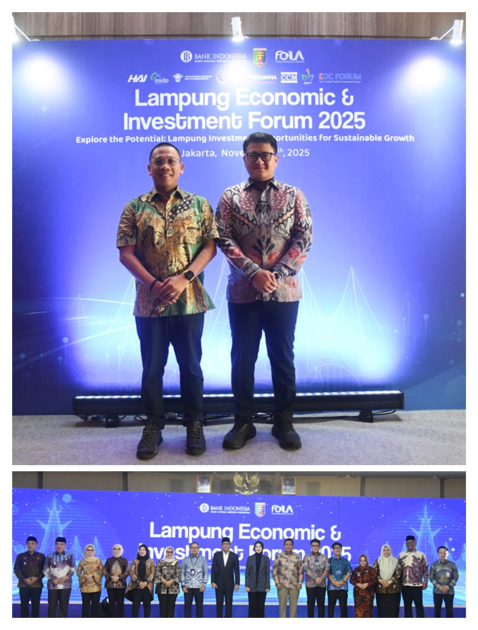 JAKARTA – Lampung Economic and Investment Forum (LEIF) 2025 berlangsung di Hotel Pullman Jakarta Indonesia, dengan kehadiran Ketua DPRD Provinsi Lampung Ahmad Giri Akbar dan Sekretaris DPRD Descatama Paksi Moeda.
