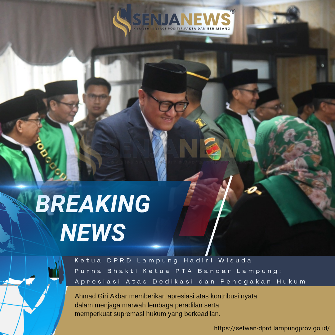 BANDAR LAMPUNG – Ketua DPRD Provinsi Lampung, Ahmad Giri Akbar, S.E., M.M., menghadiri prosesi Wisuda Purna Bhakti Ketua Pengadilan Tinggi Agama (PTA) Bandar Lampung, Drs. H. Sahrudin, S.H., M.H.I., yang berlangsung dengan khidmat di Aula PTA Bandar Lampung, Kamis (29/1/2026).