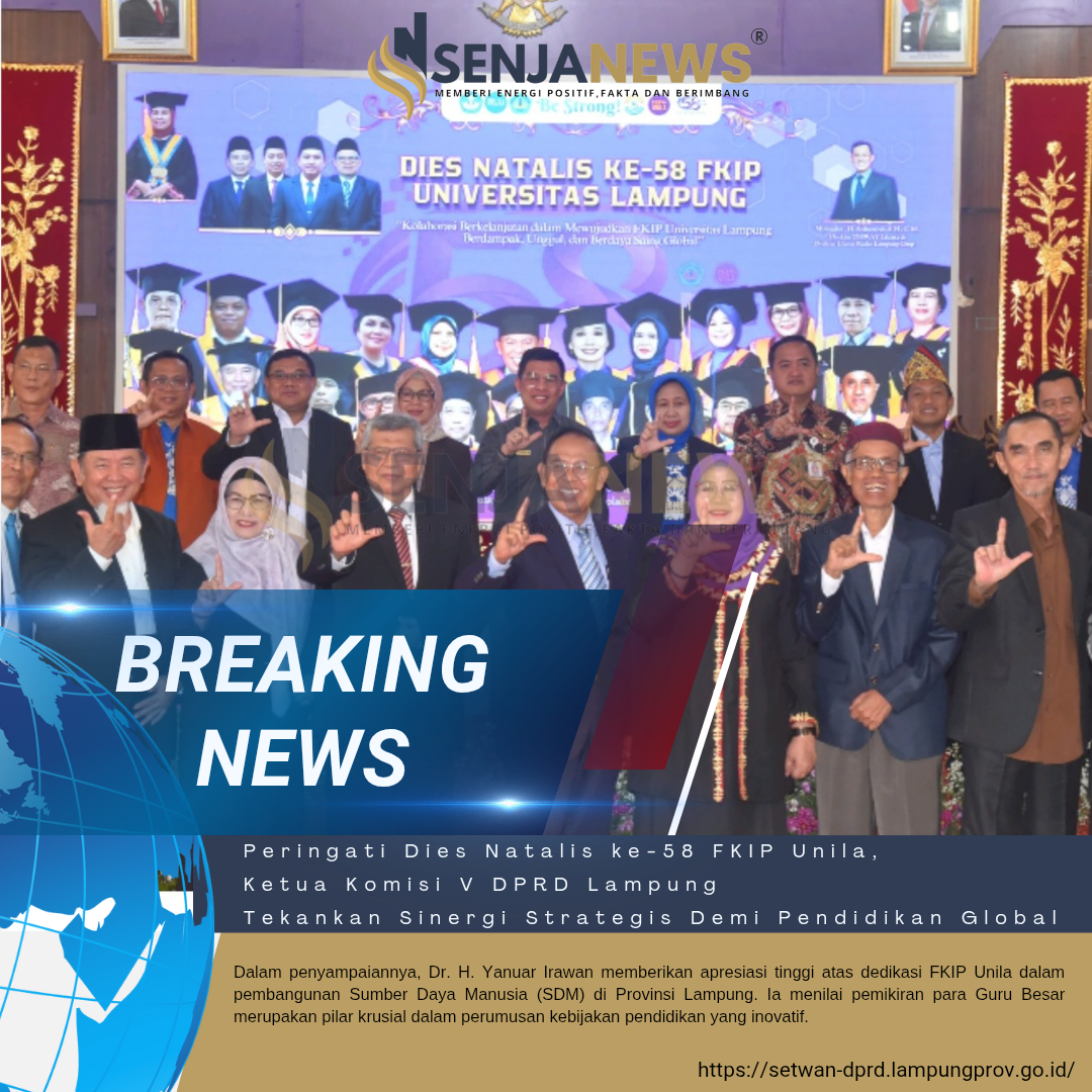 BANDAR LAMPUNG – Ketua Komisi V DPRD Provinsi Lampung, Dr. H. Yanuar Irawan, S.E., M.M., mewakili Ketua DPRD Provinsi Lampung, menghadiri agenda Gelar Wicara Guru Besar dalam rangka memperingati Dies Natalis ke-58 Fakultas Keguruan dan Ilmu Pendidikan (FKIP) Universitas Lampung. Kegiatan yang sarat akan gagasan akademik ini diselenggarakan di Gedung Aula K FKIP Unila, Kamis (29/1/2026).